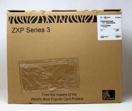 A pre-owned Zebra ZXP Series 3 Single Sided Card Printer (P/N: Z31-00000200EM00) (Box, cables and CD included).