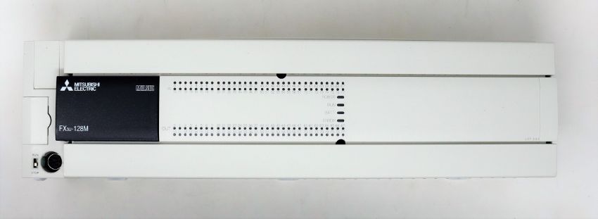 A boxed Mitsubishi MELSEC FX3U-128M programmable controller (box open, appears new).