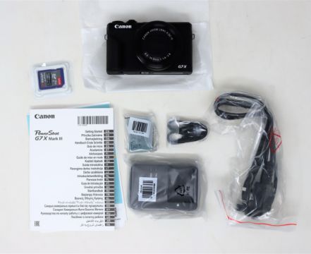 A boxed as new Canon PowerShot G7 X Mark III Digital Compact Camera in Black (64GB SD card included) (Box opened).