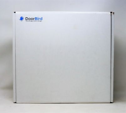 A boxed as DoorBird D2101V Flush-Mount IP Video Door Station in V4A Brass Polished Stainless Steel (Box sealed).
