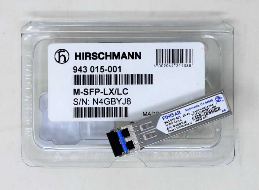 Six as new Hirschmann Finisar 943 015-001 M-SFP-LX/LC SFP Fibreoptic Gigabit-Ethernet Transceiver Modules.