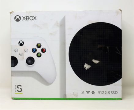 A boxed pre-owned 512GB Xbox Series-S in white (box damaged)