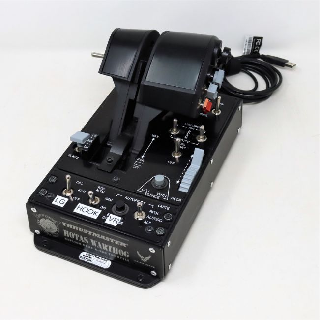 A pre-owned Thrustmaster Hotas Warthog replica USAF A-10C throttle controller for PC flight simulation