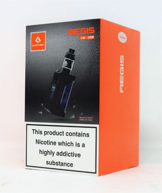 OVER 18s ONLY - Two boxed as new Geek-Vape Aegis Legend electronic cigarette kits in black/blue.
