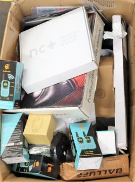 A box of assorted new and pre-owned small electrical items (All items sold as seen).
