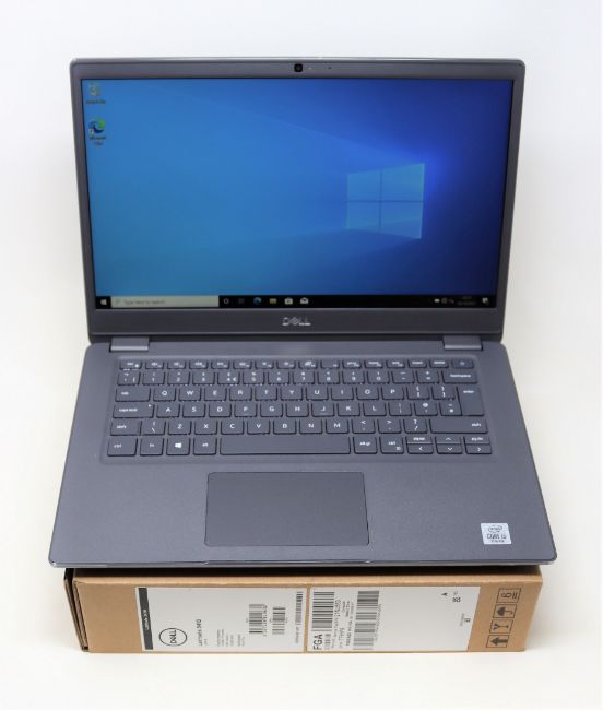 A pre-owned, boxed 14" Dell Latitude 3410 laptop with intel core i5-10210U 1.60GHz processor, 8GB RAM and 256GB SSD in grey (packaging complete with charger) (Service tag: 21NJ563)