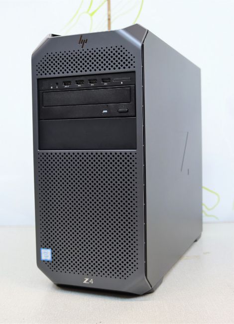 A boxed pre-owned HP Z4 G4 workstation PC with 3.20GHz intel Xeon W-2104 CPU, 16GB RAM and 1TB HDD in black. (Keyboard, mouse and accessories included) (box damaged).
