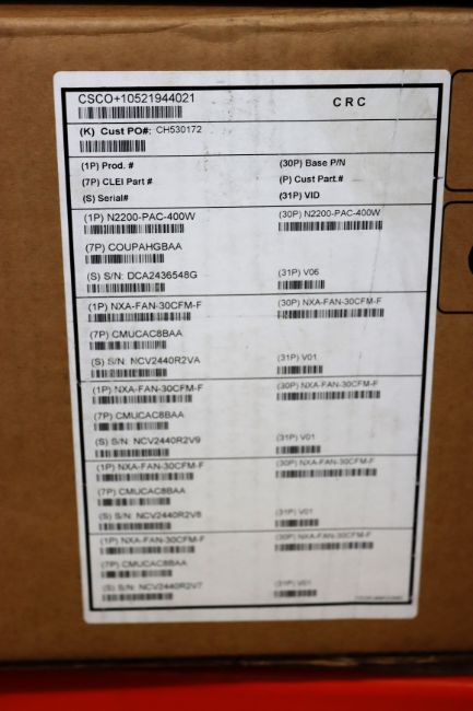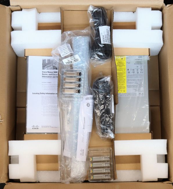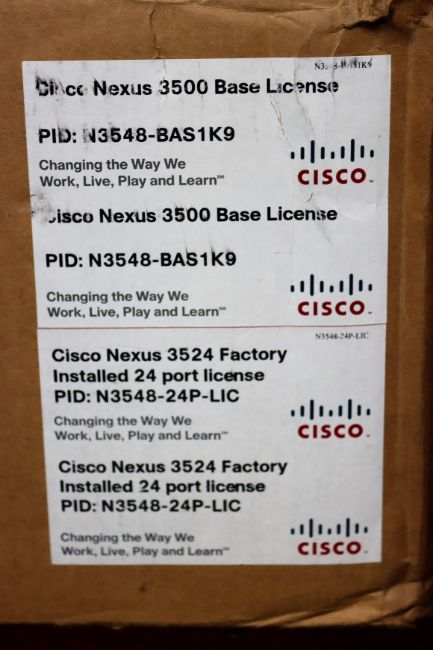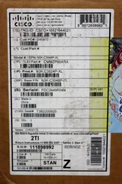 A boxed as new Cisco Nexus 3548-XL 48 port 2.5GHz network switch with 16 GB system memory; 16 GB bootflash memory. (PN: N3K-C3548P-XL) (box opened)