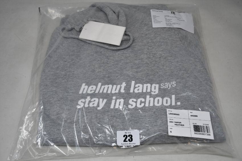 An as new Helmut Lang "Says Stay in School" hoodie in grey (S).