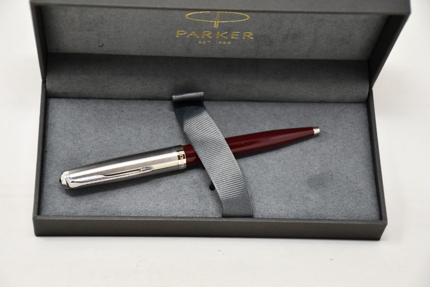 Four boxed as new Parker 51 ballpoint pens in Burgundy.