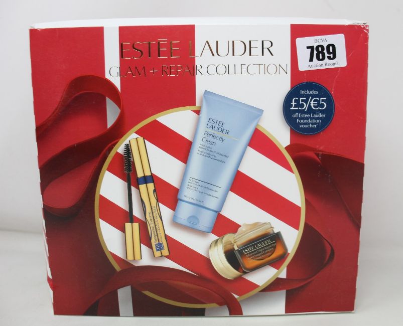 Three Estee Lauder Glam + Repair Collection Gift Sets.