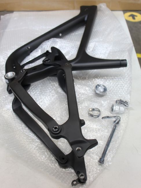 As as new Ican P9 150mm Travel full carbon fibre MTB Enduro frame, size large c/w rear thro axle, seat post clamp and headset. For flat mount disc brakes.