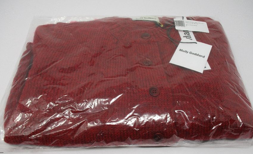 An as new Molly Goddard Giuseppe frill cardigan in red with pink (L - RRP £288).