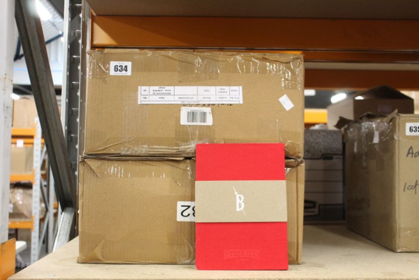 Eighty as new Beefeater London A5 notebooks (40 strawberry print design, 40 juniper print design).