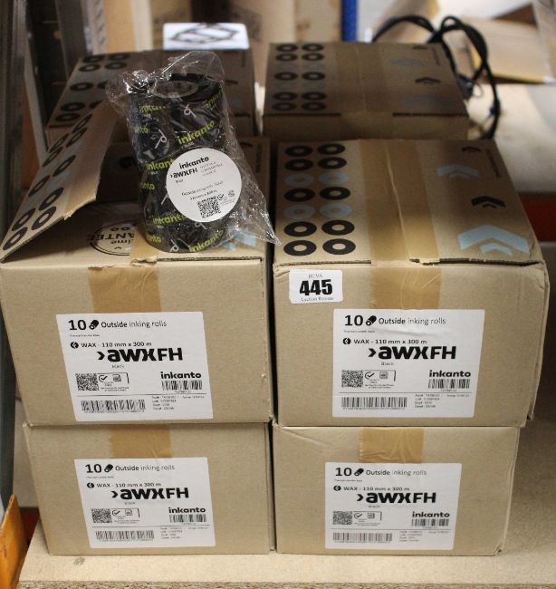 Eight boxes of ten as new Inkanto AWX FH resin enhanced wax thermal transfer ribbons - 110mm x 300m (T47661IO).