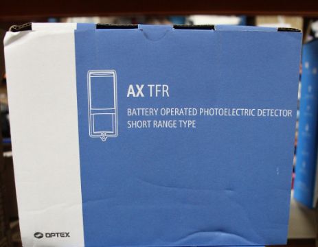 A boxed as new Optex AX-200TFR 60m beam detector.