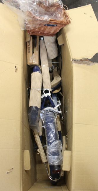 A Bobbin Moon-Bug 16" kids bike in blueberry (Bike has some damage, some parts may be missing).