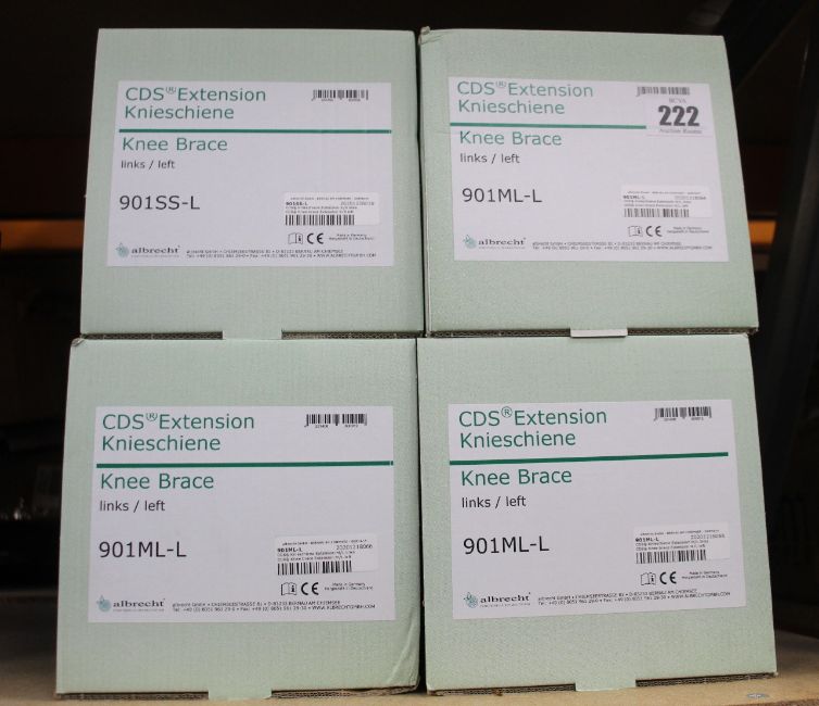 Four boxed as new Albrecht Rehabilitation CDS Knee Brace Extensions (901ML-L x 3 and 901SS-L x 1).