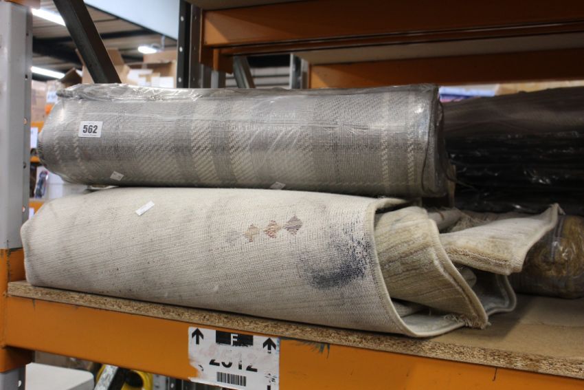 A Benuta Mythos rug in beige, a Fleko Flomi 550 beige classic rug, a Flair Rugs Loch Kilbirnie tartan rug and a Serdim Oxford shaggy rug.