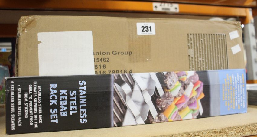 Eight Steven Raichlen Stainless Steel Kebab Rack Sets (With six stainless steel skewers).