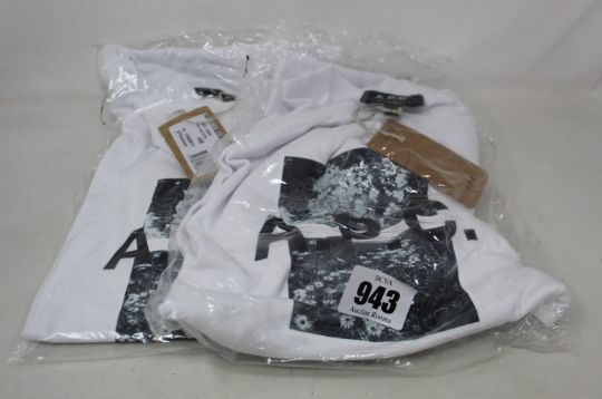 Two men's as new A.P.C. white Graphic Teddy T-shirts (L, XL - RRP £95 each).