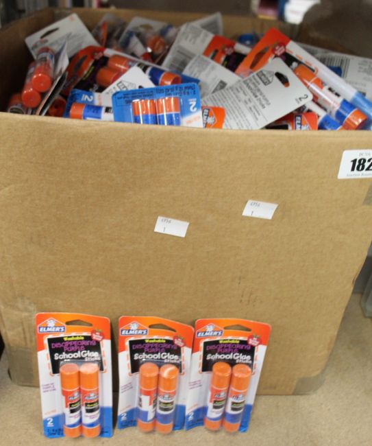 A box of Elmer's washable disappearing purple school glue sticks (Two per packet).