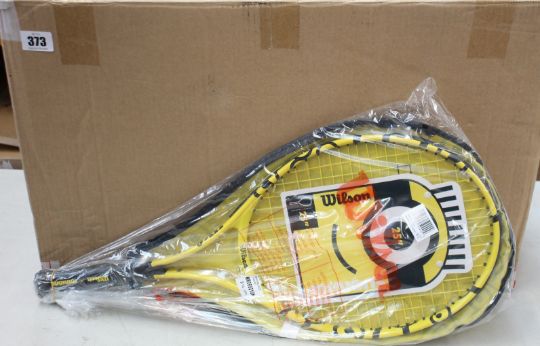 Twelve as new Wilson X Minions 25" Juniors tennis rackets with protector covers.