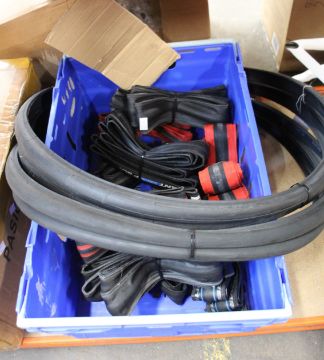Twelve pairs of as new and lightly used 700c bicycle tyres to include Michelin, Giant, Schwalbe, etc (Crate not included).
