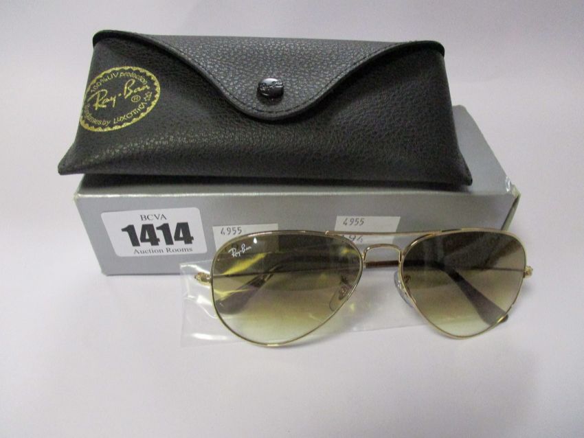 A pair of as new Ray Ban Aviator large metal sunglasses.
