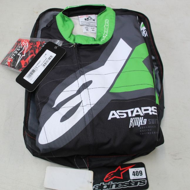 An as new Alpinestars Race - KMX-9 V2 Graphic 1 Suit in black, green and white (EU 48).