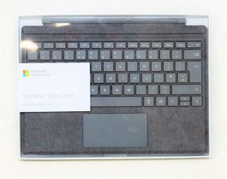 A boxed as new Microsoft Surface Pro Signature Type Cover in Alcantara Charcoal (FFQ-00143 Model: 1725) (Packaging sealed).