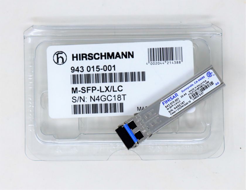 Six as new Hirschmann Finisar 943 015-001 M-SFP-LX/LC SFP Fibreoptic Gigabit-Ethernet Transceiver Modules.