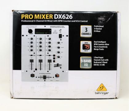 A boxed as new Behringer Pro Mixer DX626 3-channel DJ mixer (Box sealed, some damage to box).