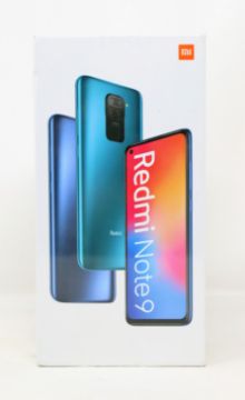 A boxed as new Xiaomi Redmi Note 9 128GB in Midnight Grey (Checkmend report: CM17642743-46A3C) (Box sealed).