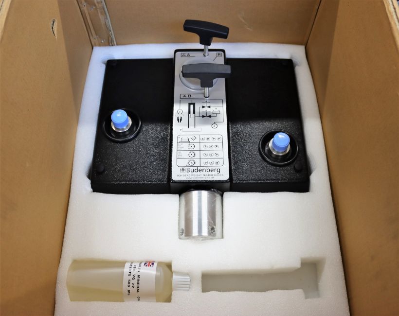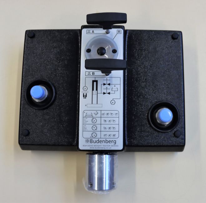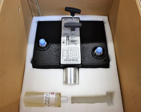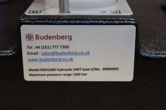 A pre-owned Budenburg BGH1200 Hydraulic Dead Weight Tester Base unit with parts and tools (Item does not come with weights, possibly other missing parts) (Boxed. 22KG) (Sold as seen).