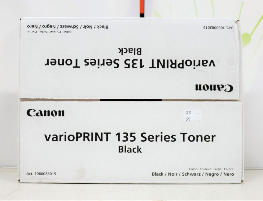 Five boxed as new Canon VarioPrint 135 series toner cartridges in black (PN: 6117B004-AA)