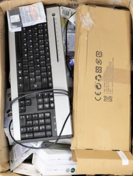 A box of assorted new and pre-owned small electrical items (All items sold as seen).