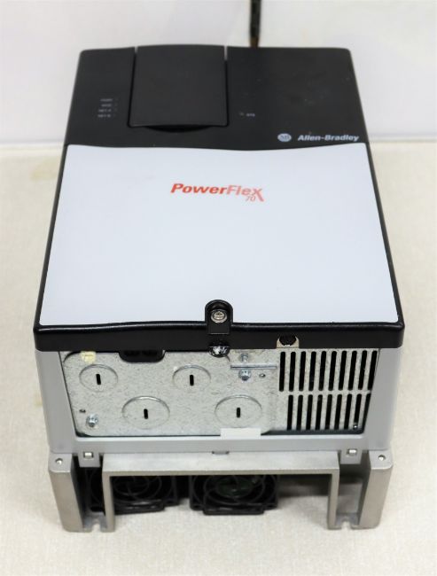 A pre-owned Allen Bradley PowerFlex 70 AC Drive (3-Phase In, 15 HP, 11kW, Type 1, IP20. Input: 400VAC, 22A) (Boxed. Untested, sold as seen).
