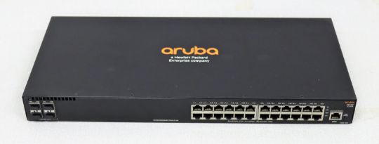 Two pre-owned HP Aruba 2930F (JL259A) 24-Port managed switches in black.