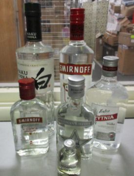 Two Smirnoff vodka (200ml, 700ml), Haku vodka (700ml), Zytnia vodka (500ml), Russian Empire vodka (200ml) and Scorpion vodka miniature with scorpion (Over 18's only).