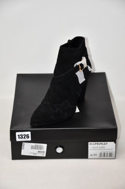 A pair of as new Biba black suede western strap ankle boots (UK 6).