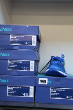 Four pairs of children's as new Asics Gel-Cumulus 21 trainers (UK 3).