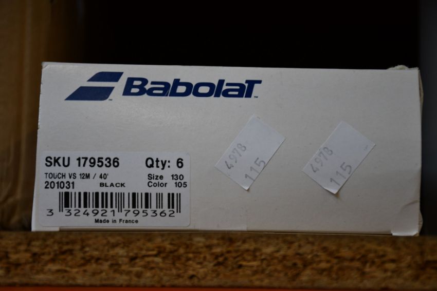 Six sets of as new Babolat Touch VS Natural Gut 12M/40' tennis racket strings (130/16 black).