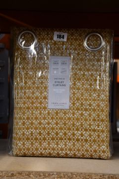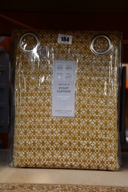 A pair of as new John Lewis & Partners Rona weave ochre eyelet curtains (RRP £180.00).