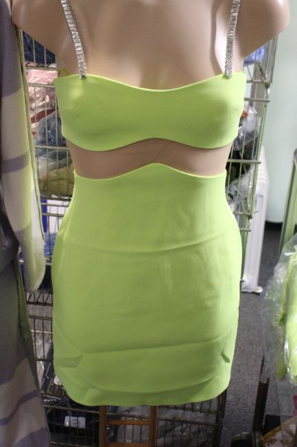 An as new David Koma linear mesh midriff mini dress in neon yellow (UK 12).