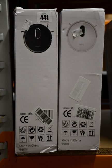 A Coayu C530 robotic vacuum cleaner and a Coayu C250 robotic vacuum cleaner (Some damage to boxes).