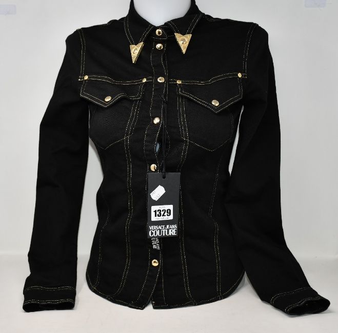 An as new Versace Couture black denim shirt with detailing (TG 40 - RRP €349).