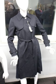 An as new Sandro long fastened coat in navy (EU 34 - RRP £475).