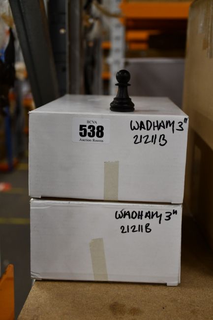 Two sets of Wadham 3" chess pieces Staunton style in double-weighted natural and black boxwood.
