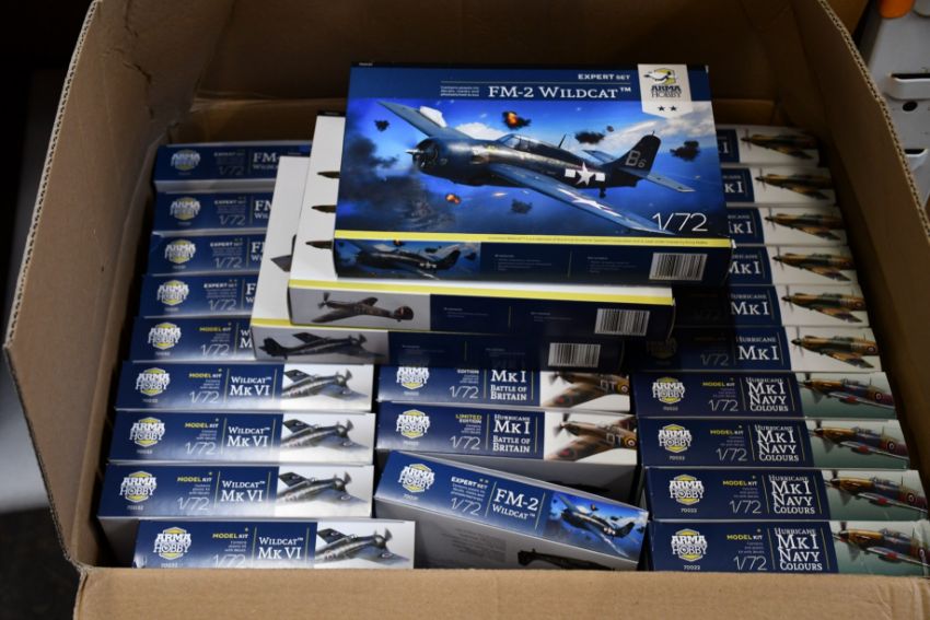 Sixty various boxed as new Arma Hobby Model Kits/Expert Sets to include Hurricane Mk II Trop, FM-2 Wildcat, Hurricane MkI - Battle of Britain and Wildcat Mk VI.